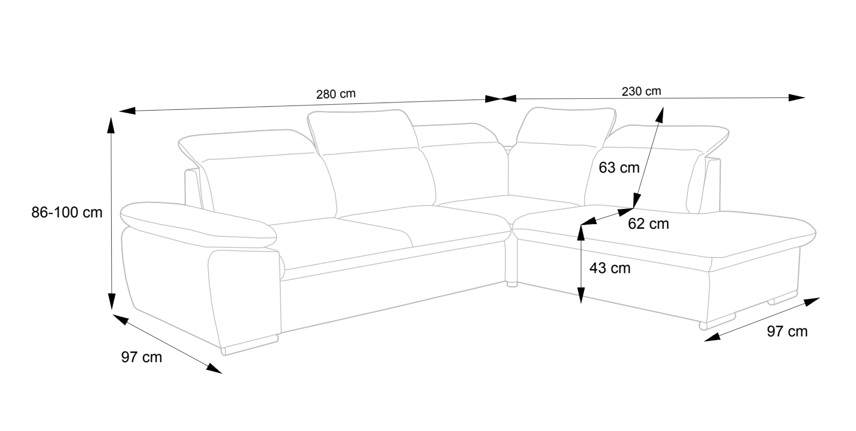 De Alvo hoekbank combineert modern design met optimaal comfort en praktische functies. Dankzij de verstelbare hoofdsteunen geniet je van perfecte ondersteuning, terwijl de zachte bekleding zorgt voor een aangenaam zitcomfort.